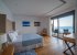 Italian hardwood floors run the length of the large open plan kitchen and living area. Deluxe handpicked furnishings, modern art, and a top-of-the-range kitchen, in what we can only describe as Aegean blue. The meticulous design of the villa ensures it’s a view you can enjoy from almost anywhere.