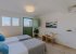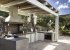 The impressive living areas include a spacious and open plan living room with high ceilings and a fireplace. There is also a dining area and a study with French doors that lead to an area shaded by an arched colonnade. This spot offers views to the infinity pool and gardens. A fully fitted kitchen opens onto an outdoor pergola, a shaded dining area next to the pool and wide patios, firming a perfect space for alfresco living, dining and relaxing.