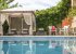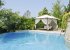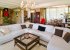 The exterior is traditionally Mediterranean in style with a mixture of white-washed and exposed stone walls. The interior continues the classic cottage feel with a stone-built fireplace and elegant dark wood furniture.