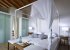 Four large bedrooms are located on the ground level of the main building; two have double beds, one has a double bed and a single bed, and the fourth has two single beds that may be combined to make a double bed.