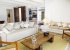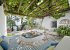 A gorgeous seating and dining space is located in the centre of the terrace, overlooking the sea. Under a magnificent, grapevine-covered pergola, there are large, comfortable sofas and a tiled dining table. Imagine taking in the beautiful aroma of the blossoms while having breakfast here in the early summer when they are in bloom, or later in the season while savouring the fruit.
