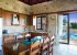 Lounge/dining room with flat screen satellite TV, DVD player, CD player, sofa, dining table and doors leading to terrace