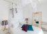 The kitchen has a gorgeous glass breakfast bar and is modern and sleek. The stunning, magnificent living environment is once more ethereal, all in dreamy white with sporadic pops of colour. Even the entryway is attractive.