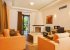 - Open-plan lounge area with TV, DVD/CD, fireplace, air-conditioning and patio doors leading to the garden
