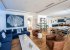 Under a gorgeous bird in flight light and another remarkable piece of art is a massive corner sofa in Aegean blue.