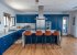 The most discriminating of cooks will be delighted by this kitchen, which features a very generous selection of blue cabinetry topped with high-quality, glossy worktops, a huge wine fridge to keep your week's supply of delicious wine chilled, top-of-the-line appliances, and a very sociable island with stools.