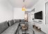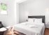 Enter the living area through the floor to ceiling windows to find a sophisticated space with crisp white walls and simple furniture.