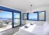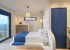 Large bi-fold doors lead to the covered outdoor dining area, where guests can enjoy the panoramic view of Mirabello Bay. The master bedroom, which has an en-suite bathroom and a private terrace, is also on the ground floor.