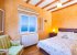 There is a stove and extractor fan, as well as a dining table with cushioned chairs, for self-catering. It is painted in citrus tones and resembles Corfu town.