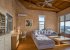 The main living space is located on the top floor and features high wooden ceilings, welcoming wooden floors, large windows, and beautiful stone walls.