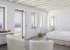The villa is a lovely blend of traditional Cycladic architecture and modern styles, with a clean, minimalist aesthetic throughout.