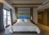 The master bedroom, which is decorated with modern art, has a king-size bed, side tables, fitted wardrobes, and a furnished balcony with uninterrupted sea views.