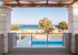 The elegant living room has a view of the azure Ionian Sea and the pool terrace.