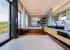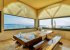 The entire area is lit naturally and offers stunning sea views thanks to the enormous arched windows and glass doors.