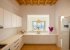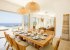 Ten chairs and a wood and wicker table are in the adjacent dining space, which is perfect for elegant indoor parties. Every modern item you'll need to prepare meals during your vacation is included in the all-white kitchen, including a family-size fridge freezer, an integrated oven and stove, a microwave, a dishwasher, and that indispensable morning coffee maker.