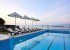 Upstairs on the first floor there are three bedrooms. The first bedroom has a double bed, TV, air condition and a terrace overlooking the pool and the sea.The second bedroom has a double bed, a sofa bed for two people, a TV, air condition and a terrace with a sea-view. The third bedroom, overlooking the garden, has two single beds, a TV,air condition, and a door leading to the garden.