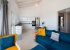 The villa features a private pool with comfortable loungers and parasols, allowing you to soak up the sun and enjoy the stunning sea views. Al fresco dining is also available, thanks to the built-in BBQ, or you can choose to spend your time indoors in the open-plan living, dining, and kitchen area. The kitchen is fully equipped with modern appliances and the living area is designed for relaxation and enjoyment of the fantastic view.