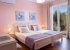 The dining area and the sitting room with a fireplace enjoy plenty of space and some beautiful seaviews. There is a large veranda extending out of the dining and the seating areas with magnificent, panoramic views of sea views and olive groves, while the views reach right across to the mainland mountains. The lower floor features two bedrooms with ensuite shower rooms (one double and one twin bedroom). French doors from the lower floor open to reach a totally relaxing pool and garden area.