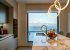 Upon entering the villa, on the upper floor you are greeted by an open and spacious living area with floor-to-ceiling windows that showcase the panoramic views of the endless blue.