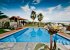 A curved wooded staircase leads to the first floor where the three bedrooms are. The master double bedroom is en suite with a steam shower bathroom. There is also one twin bedroom and one double which share a bathroom with a Jacuzzi tub. Patio doors lead to a large terrace overlooking the pool and garden.
