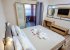 Both the villas are of similar size, design and interior decoration. They both have 2 bedrooms, one with double bed and the other one with two single beds. A folding bed can be added to the second bedroom whereas one/two children could be accommodated in the sitting room, so as to accommodate up to a total of 6 guests. The villas have one full bathroom with shower cabin with a hydromassage column and an extra WC. They are fully equipped with a/c, satellite TV, CD and DVD player & CD and DVD library, fridge/freezer, 4-hob kitchen, oven, kettle, coffee maker, toaster, dishwasher, washing machine, iron & iron board. Outdoors they feature a garden/patio area with sunbeds, sun umbrellas, shower, BBQ and dining furniture where guests can relax and enjoy the most amazing sunset and sea views.