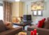 On the ground floor, there is a large area with modern sofas, fireplace, TV, DVD player, wireless internet access, comfortable chairs, a large dining room area, toilet, and a fully equipped kitchen including a fridge freezer, dishwasher, washing machine, microwave, toaster, kettle, coffee maker, vacuum cleaner, iron, ironing board, modern dinnerware, and glasses. The decor is complemented with beautiful lighting, carefully selected tables, and elegant soft furnishings.