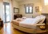 Continuing on to the first floor there are three spacious bedrooms with wooden floors, stylish furniture, including a wardrobe, desk, chairs, TV, and DVD player. Each room has its own style, in perfect harmony with the colors of the elegant fabrics.