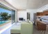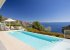 It has a spacious and comfortable living room with an open plan fully equipped kitchen and a dining area where you can enjoy a meal with your loved ones. The living room offers a wonderful panoramic view to the pool and sea, due to its large window doors.