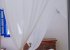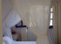 -The romantic white room, with king size bamboo canopy bed and lace cover for the wardrobe.