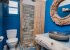 -A sea-themed bathroom, with bathtub, shower, two sinks and separate WC.
