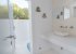 -En suite master bathroom, with feature mirror, white natural stone double sink, double shower with "messages in bottles", and very large bath. With driftwood curtain rails and natural shell, mosaic and stone decorations.