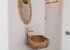 -A nature themed bathroom, with stone shower and sink into which water springs from a large natural shell. Natural shell lights.