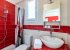 The ground floor comprises a large, fully equipped kitchen with dining area, lounge and guest toilet as well as the master bedroom with en-suite bathroom. A second bedroom with a spacious bathroom – wheelchair accessible and perfectly suitable for disabled persons – is also located on the ground floor.