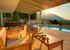 This villa is built on three levels. The middle floor is at ground level. The entrance of the villa is on the middle floor and it leads to a living area with comfortable seating and a corner study, a double bedroom (with a built-in wardrobe) and a family bathroom. The living area and the bedroom access a wrap-around balcony with breathtaking view. The balcony offers an outdoor sitting area with loungers.