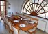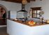 The lounge has, a stone featured open fire place, wooden floors and traditional high Cretan ceilings with full beams. The second section of the lounge houses a grand piano and two stone arches, leading to a large and fully equipped modern kitchen-diner. There are fully fitted appliances, a large L shaped open breakfast bar and preparation area, marble tiled work tops, and a dining table for up to 10 people overlooking the garden through a splendid fan shaped window. Double wooden doors lead from the dining area to the rear gardens.
