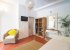 Spacious living room looks like cabins company ocean liner.