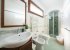 The second bathroom is accessed from the corridor. It is equipped with a washbasin, a toilet and a Jacuzzi bathtub.