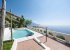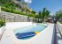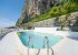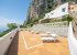 The pool area is surrounded by stone benches and sun loungers. Five steps lead up to an additional terrace, functioning as a sunbathing terrace, with elevated views towards Amalfi and across the bay. The sunbathing area is comfortably furnished with sun loungers, a dining table with armchairs , a coffee table.