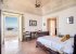Bedrooms: To the left, a double bedroom with vaulted ceilings, antique majolica floors, and an en-suite bathroom opens to a private terrace with sea views. To the right, a second double bedroom boasts classic décor, light-filled windows, and an en-suite bathroom, both bedrooms are connected.