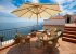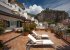 An additional six steps takes to the rooftop terrace with an extra outdoor seating area equipped with wicker chairs for 4 people shaded with a sun umbrella.
