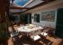 The terrace boasts a very comfortable and inviting patio equipped with a seating area and dining area covered with a retractable awning . Outdoor furnishings include wickers sofas with cushions sitting 8 people , 4 lounge chairs, 2 sun umbrellas and a table with chairs that can accommodate up to 6 people. There is also a large outdoor shower.