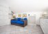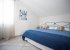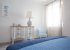 The second bedroom in the blue color is a twin bedroom (easily convertible into a double if necessary) with a French door leading to a small balcony with sea view. This bedroom features a wardrobe, a bookcase and a drawers.