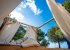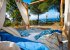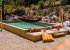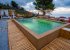 Solarium with private pool shaded area with outdoor shower and launge chairs