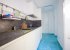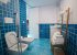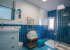 This room gives access into the specious bathroom with blue majolica tiles equipped with an enclosed shower, washbasin, bidet , WC and a window facing north.