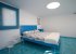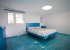 The living/dining room is an open space with a night area separated by a modern room divider made of blue and green ivy. On one side of the room, a matrimonial bed with bedsides and a window facing north; instead, the other side, equipped with a desk seating 2 people, 2 chaises lounges, a walk-in closet, an air conditioning unit, is illuminated by two large windows facing the sea.