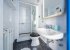 Finally, a small bathroom which is equipped with a glass enclosure shower, a washbasin and a toilet .