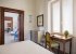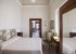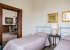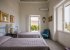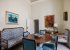 The living room, with its airy ambiance and high barrel-vaulted ceilings, serves as the heart of the villa. Furnished with exquisite period pieces, it exudes the timeless elegance typical of prestigious Sicilian homes, all while offering breathtaking views of the outside garden and sky.
