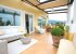 The private garden is 400 metres squared and is partly shaded by tall palm and lemon trees. It has a hammock and sun loungers where you can relax and enjoy the sunshine. Next to the garden is the private patio which is furnished with tables and chairs and covered to provide shade.