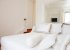 There is a third bathroom with a wash basin and a toilet. At the end of the corridor, there is a third bedroom, which also has a view of the garden. This is a double room but the beds can be separate to make it a twin. The bedroom is equipped with a flat-screen TV and air conditioning/heating.