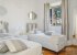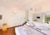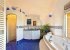The lounge is paved with characteristic terracotta tiles. The modern furnishings are stylish and comfortable. There are two large sofas and a satellite television and air conditioning. An extra bed can be added in the lounge (on request and extra charges may apply). The room has two windows with a view of the garden and the terrace. The dining room is accessible from the lounge room and has a dining table, which can accommodate 6 guests, and air conditioning.